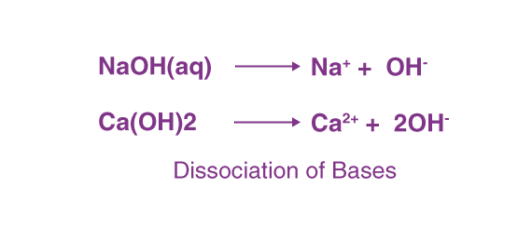 The bases dissociate in their aqueous solution to form their constituent ions, given in the following examples.