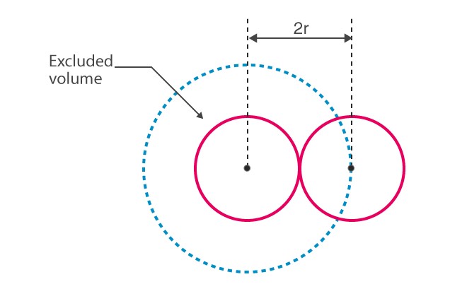 - Two particles at close range interact and have an exclusive spherical volume around them.