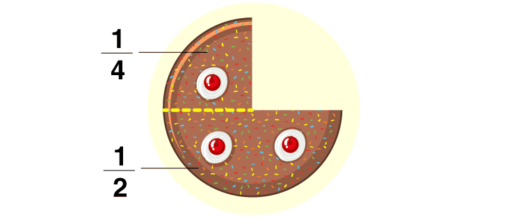 - Denominator: It is the lower or bottom part that represents the total parts in which the fraction is divided.