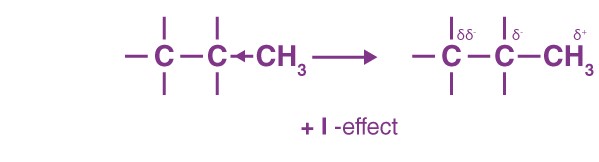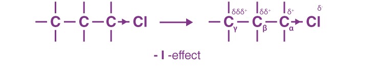 The arrow is pointed more towards the electronegative atom. If a group withdraws the electron from carbon, it makes carbon slightly electropositive. Such groups are called -I groups, and the effect is termed -I effect. For example, -Cl, -Br, -CN and -NO2 are -I groups.
