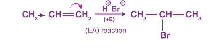When the π-electrons are given to the attacking reagent, for example, the reactions alkenes and alkynes mostly occur via +E, this reaction is also called electrophilic addition.