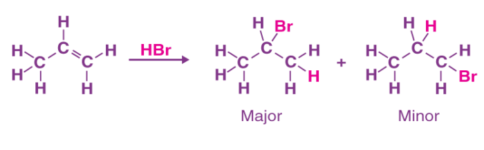 To simplify the rule, it can also be stated as – “Hydrogen is added to the carbon with the most hydrogens and the halide is added to the carbon with the least hydrogens”.