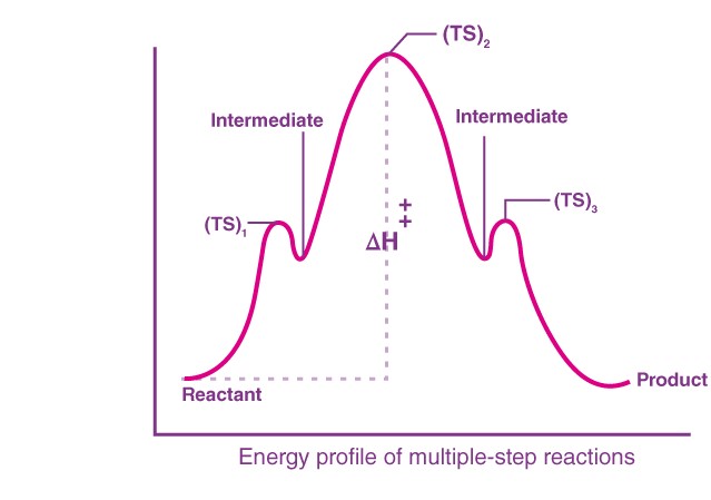The intermediates in organic chemistry are formed in a multi-step reaction, but some reactions can occur in a single step without having to form an intermediate. These reactions will occur by going through a transition state. This can be clear by looking at the energy profile diagram for a reaction, R→P.