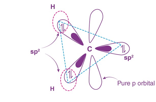 The electrons are present in different orbitals with opposite spins. The electrons are paired in sp2 hybridized orbitals and behave as paired electrons.